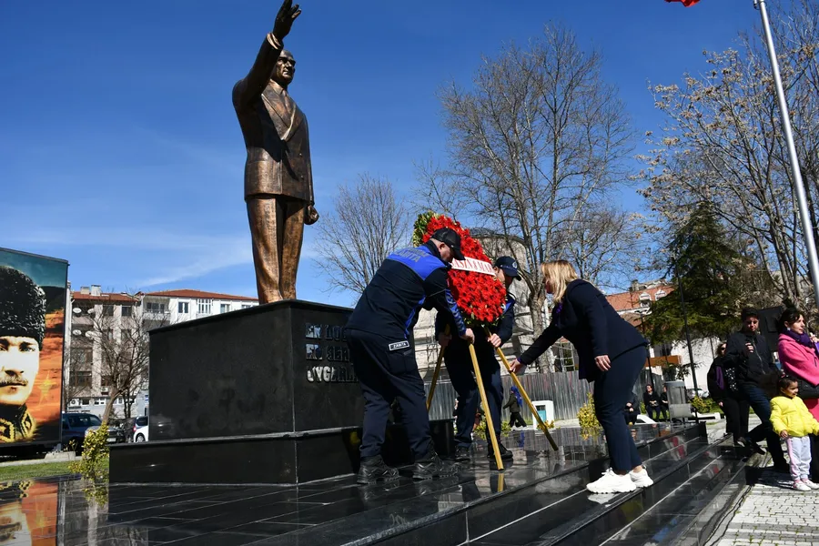 Kadınlar buradan Zübeyde Hanım Parkı’ndaki Zübeyde Hanım Büstü’ne giderek çiçek bıraktı ardından Belediye Başkan Yardımcısı Derya Aktan tarafından Yeni Tören Alanı’nda Atatürk Anıtı’na çelenk bırakıldı.