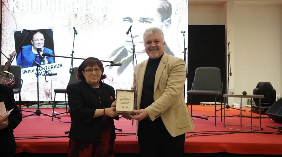 Belediye Başkan Yardımcısı Derya Aktan gecenin sonunda katılımcılara teşekkür ederek plaket sundu.